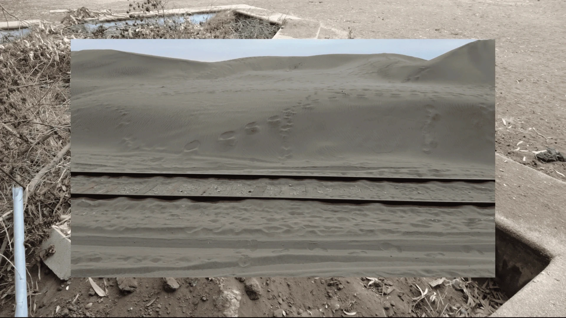 From periodic visits to Ciudad Abierta de Amereida, the approach with the landscape and its guests, I became interested in the path of the train line that connects that idyllic part of the territory, protected and preserved, to the wasteland of Ritoque where crimes were committed during the Pinochet dictatorship, to the contaminated Bay of Quintero where Porto Ventanas is located. It was years of walking and observing, photographs and short videos of the routes taken.