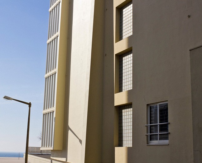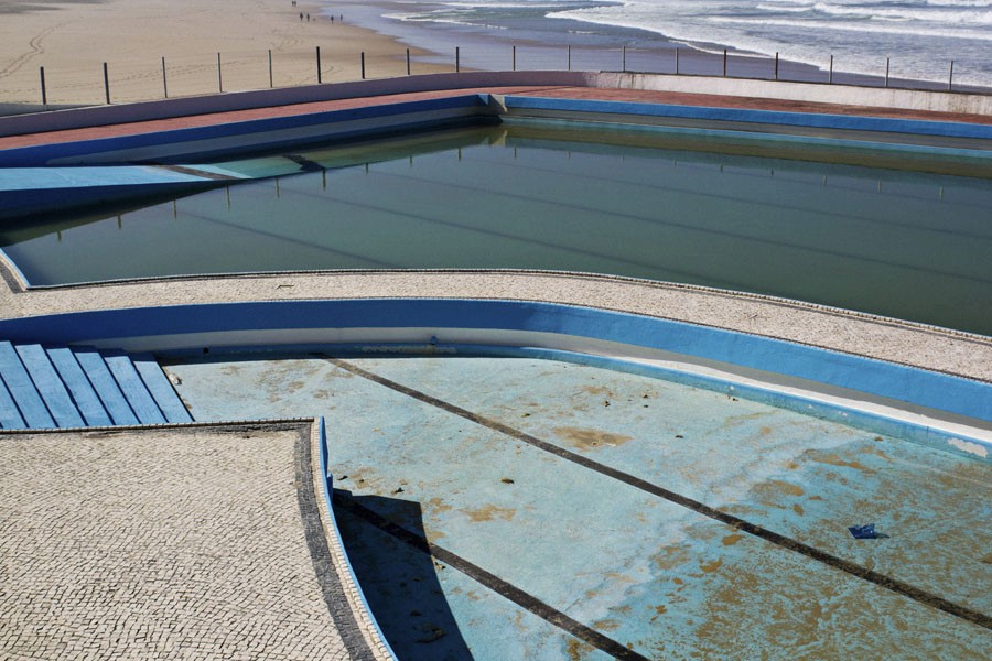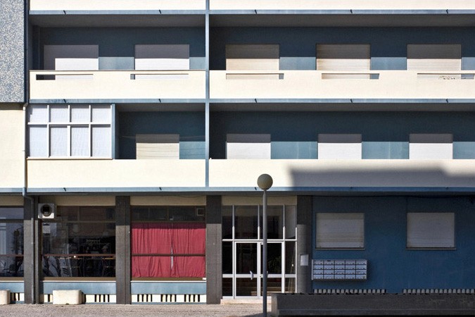 In February 2012 I took a road trip along the coast of the country, leaving the city of Porto until I reached Lisbon, in search of remnants of the architectural style known as "Portuguese Suave", incorporated by the fascist regime as a national symbol and readapted to the political propagandist language. Throughout the trip, other aspects related to living in coastal summer resort towns were incorporated into the work, including the Troia Peninsula, south of Lisbon. The project brings together the photographic series "A uma casa de distância da minha" and the video "Suave".